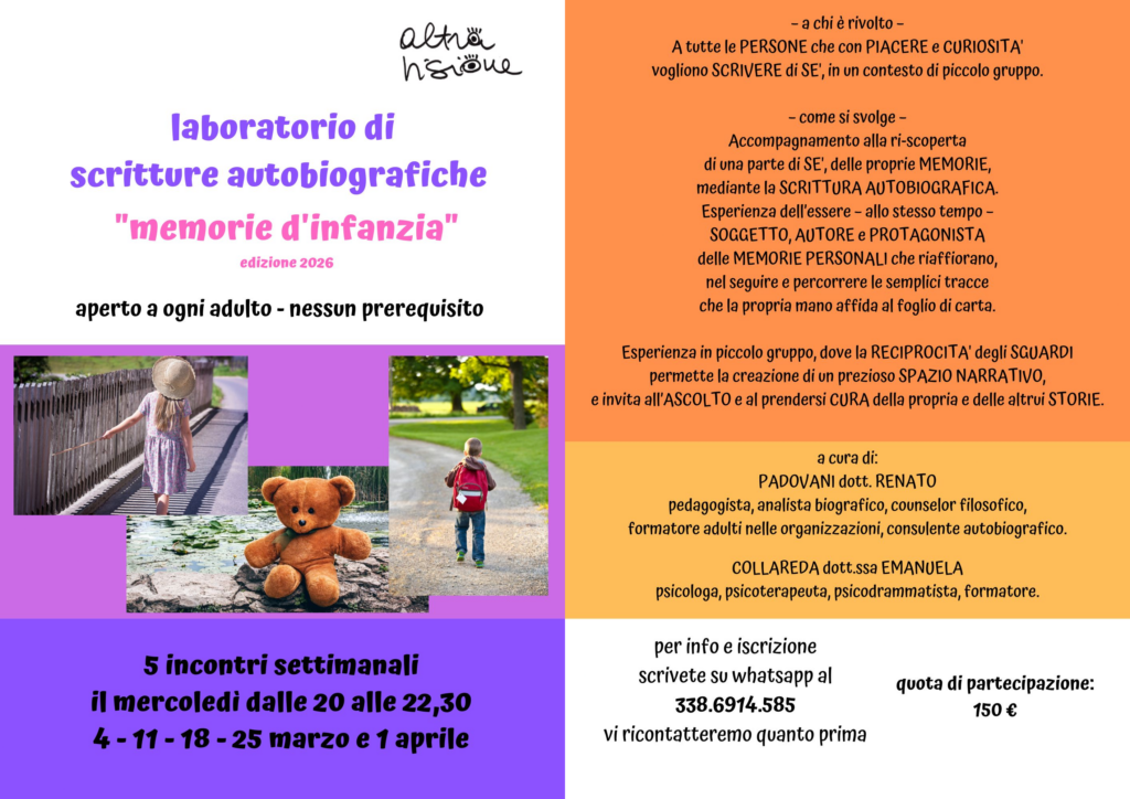 Pedagogista, analista biografico (sabof), counselor (assocounseling), formatore adulti nelle organizzazioni, consulente autobiografico – www.labof.it